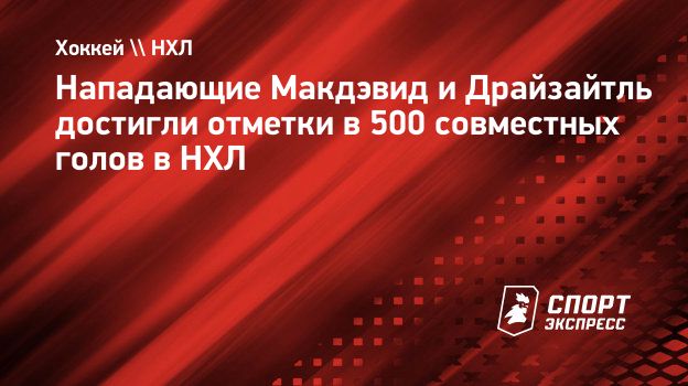 Нападающие «Эдмонтонтона» Леон Драйзайтль и Коннор Макдэвид стали шестой парой партнеров в истории НХЛ, которые отличились в 500 голах одновременно.