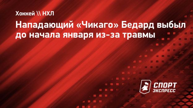 Нападающий «Чикаго» Бедард выбыл до начала января из-за травмы