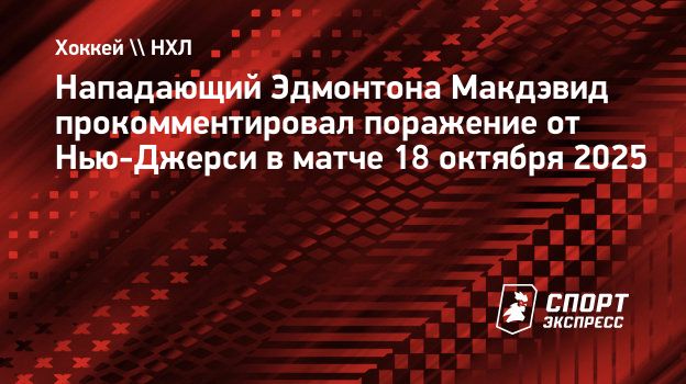Нападающий «Эдмонтона» Коннор Макдэвид прокомментировал поражение от «Нью-Джерси» (3:5) в матче регулярного чемпионата НХЛ.