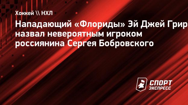Нападающий «Флориды» Эй Джей Грир признался, что его восхищает трудолюбие партнера по команде Сергея Бобровского.