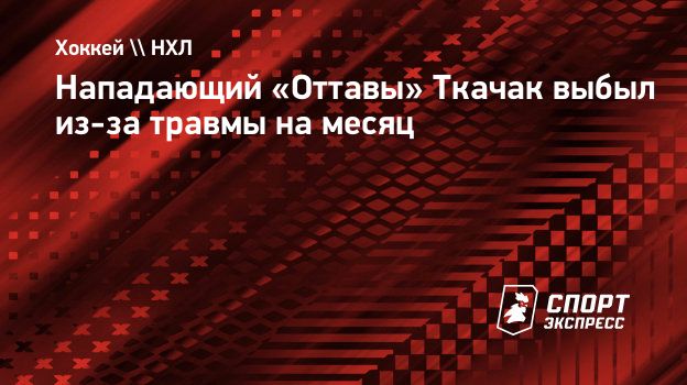 Нападающий «Оттавы» Брэди Ткачак выбыл из-за травмы руки как минимум на месяц, сообщил главный тренер команды Трэвис Грин.