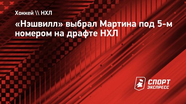«Нэшвилл» выбрал Мартина под 5-м номером на драфте НХЛ