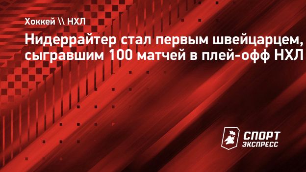 Форвард «Виннипега» Нино Нидеррайтер стал первым хоккеистом из Швейцарии, который провел 100 матчей в плей-офф НХЛ, сообщает пресс-служба лиги.