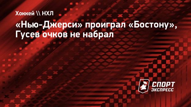 «Бостон» переиграл «Нью-Джерси» в матче регулярного чемпионата НХЛ (3:0). Российский нападающий «Дэвилз» Никита Гусев очков не набрал.