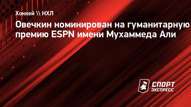 Нападающий «Вашингтона» Александр Овечкин номинирован на гуманитарную премию ESPN имени Мухаммеда Али.