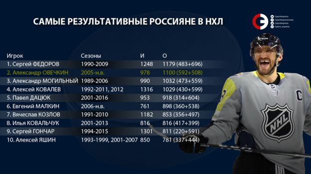 Результативнее капитана "Кэпиталз" в НХЛ играл только Сергей Федоров, набравший за карьеру 1179 (483+696) очков. При этом Овечкин оказался 23-м игроком, набравшим 1100 очков за одну команду.
