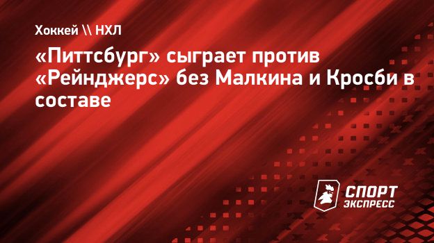 «Питтсбург» сыграет против «Рейнджерс» без Малкина и Кросби в составе