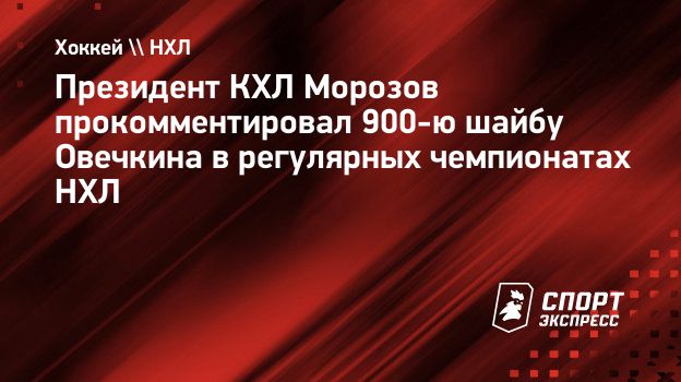 Президент КХЛ Алексей Морозов прокомментировал «СЭ» 900-й гол нападающего «Вашингтона» Александра Овечкина в регулярных чемпионатах НХЛ. Он отличился 6 ноября в игре с «Сент-Луисом» (6:1).