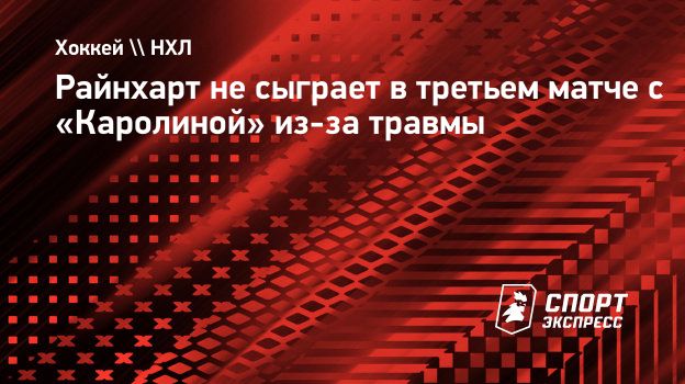 Райнхарт не сыграет в третьем матче с «Каролиной» из-за травмы