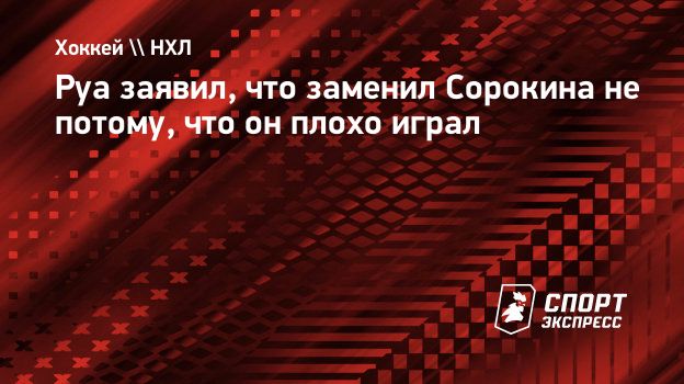Главный тренер «Айлендерс» Патрик Руа объяснил, почему заменил голкипера Илью Сорокина в начале третьего периода матча регулярного чемпионата НХЛ с «Ванкувером» (2:5).