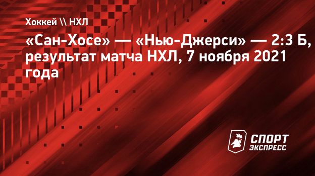 «Нью-Джерси» победил «Сан-Хосе» в матче регулярного чемпионата НХЛ — 3:2 Б.