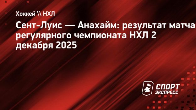 «Сент-Луис» прервал серию из двух побед подряд. В 25 играх он набрал 27 очков и занимает 13-е место в Западной конференции. «Анахайм» с 33 очками после 26 встреч располагается на третьем месте.