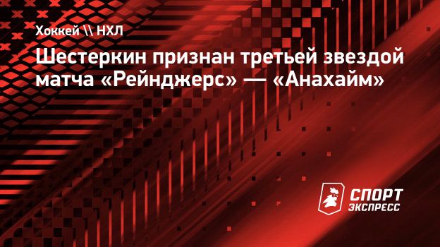 Шестеркин признан третьей звездой матча «Рейнджерс» — «Анахайм»