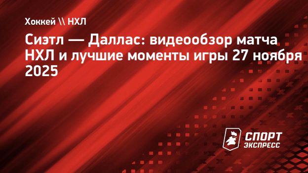 «Сиэтл» — «Даллас»: видеообзор матча НХЛ