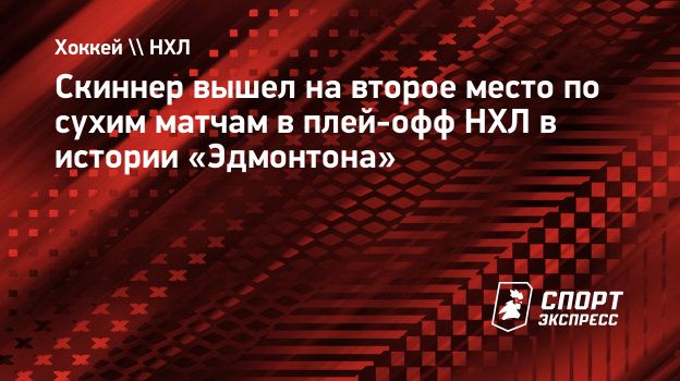 Скиннер вышел на второе место по сухим матчам в плей-офф НХЛ в истории «Эдмонтона»