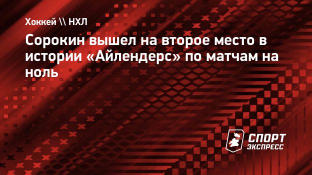 Сорокин вышел на второе место в истории «Айлендерс» по матчам на ноль