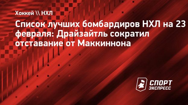 Список лучших бомбардиров НХЛ на 23 февраля: Драйзайтль сократил отставание от Маккиннона