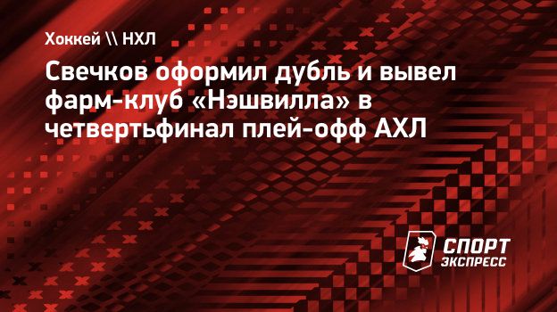 Свечков оформил дубль и вывел фарм-клуб «Нэшвилла» в четвертьфинал плей-офф АХЛ