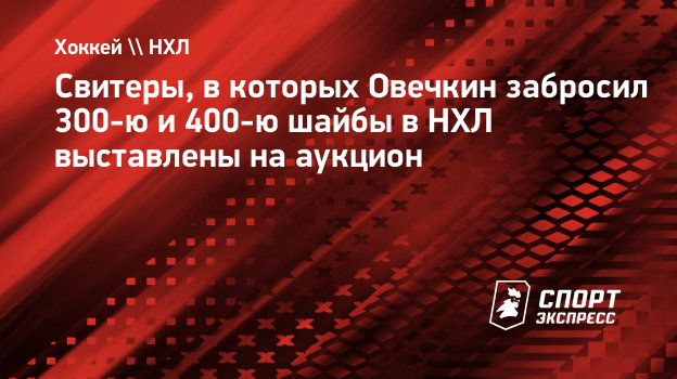 Свитеры российского капитана «Вашингтона» Александра Овечкина, в которых он забросил 300-ю и 400-ю шайбы в НХЛ, выставлены на продажу в аукционном доме Heritage Auctions, согласно информации на официальном сайте аукциона.