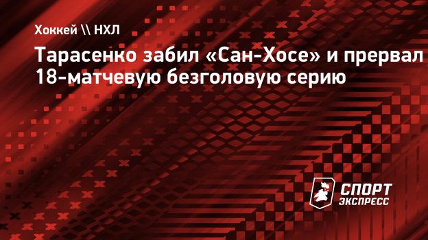 Тарасенко забил «Сан-Хосе» и прервал 18-матчевую безголовую серию