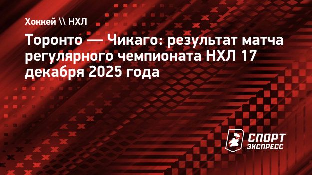 «Торонто» обыграл «Чикаго» в матче регулярного чемпионата НХЛ — 3:2.