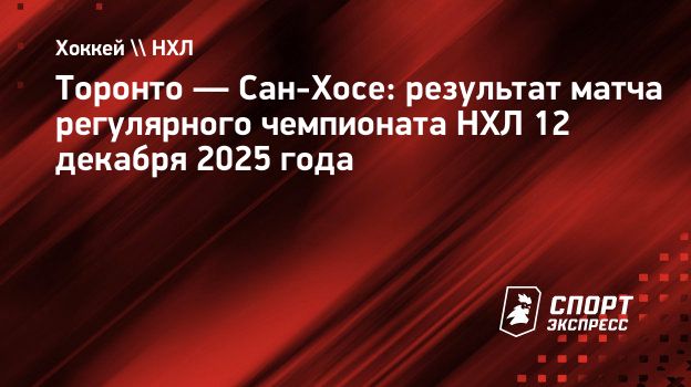 «Сан-Хосе» обыграл «Торонто» в матче регулярного чемпионата НХЛ — 3:2 ОТ.