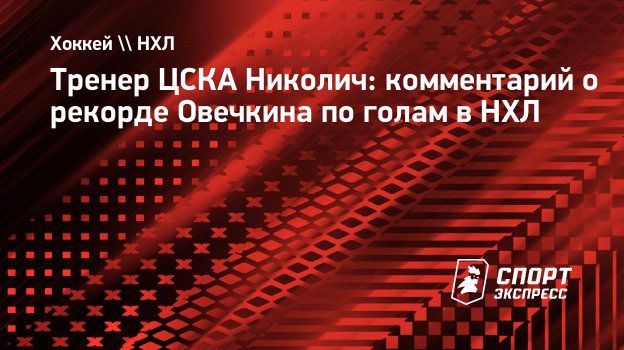 Тренер ЦСКА Николич: «Каждому россиянину нужно гордиться Овечкиным»