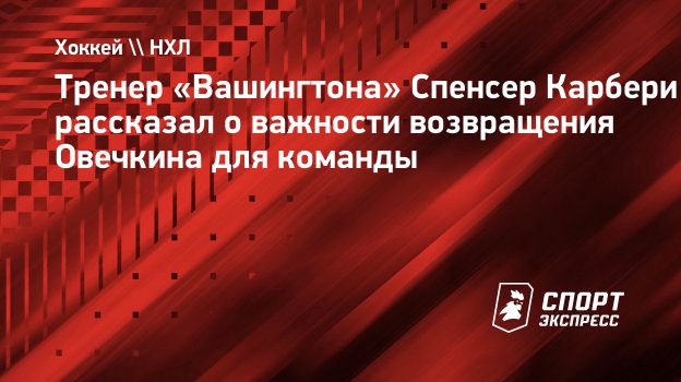 Главный тренер «Вашингтона» Спенсер Карбери прокомментировал предстоящее возвращение нападающего команды Александра Овечкина на лед после травмы.