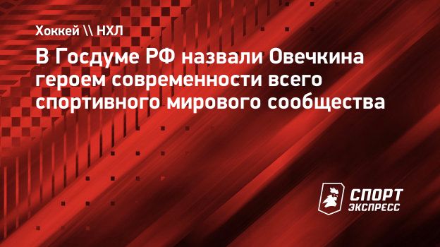 В Госдуме РФ назвали Овечкина героем современности всего спортивного мирового сообщества