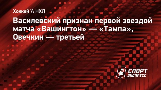 Вратарь «Тампы» Андрей Василевский стал первой звездой матча регулярного чемпионата НХЛ против «Вашингтона» (3:1).
