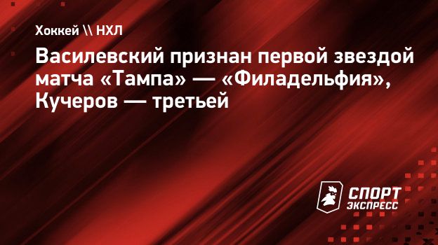 Василевский признан первой звездой матча «Тампа» — «Филадельфия», Кучеров — третьей