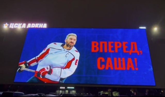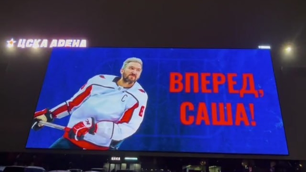 На медиатабло на фасаде «ЦСКА-Арены» в Москве появилось видео в поддержку нападающего «Вашингтона» Александра Овечкина, сообщает ТАСС.