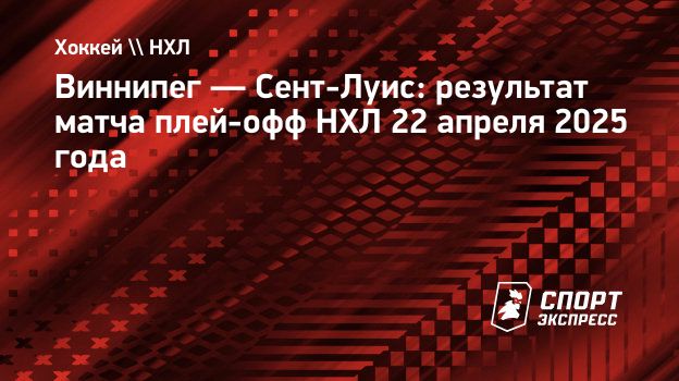 Счет в серии 2-0 в пользу «Виннипега». Следующий матч пройдет 25 апреля в Сент-Луисе и начнется в 04.30 мск.