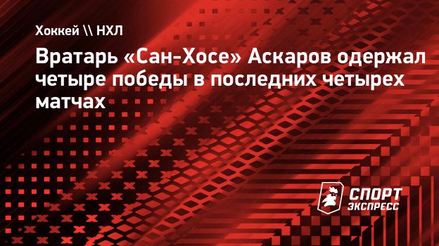 Российский вратарь «Сан-Хосе» Ярослав Аскаров одержал четыре победы в последних четырех матчах регулярного чемпионата НХЛ.