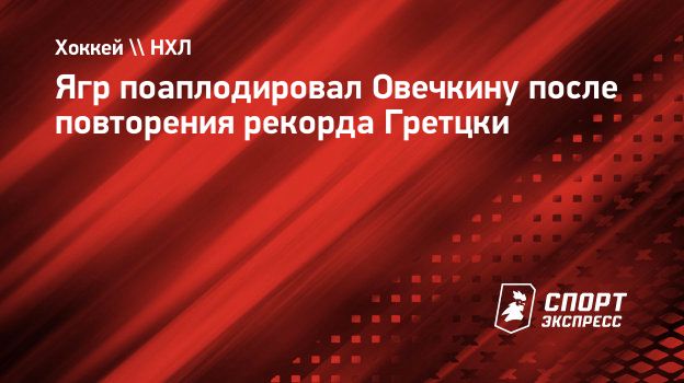 Олимпийский чемпион чех Яромир Ягр в социальных сетях отреагировал на достижение российского форварда «Вашингтона» Александра Овечкина, который повторил снайперский рекорд НХЛ канадца Уэйна Гретцки.
