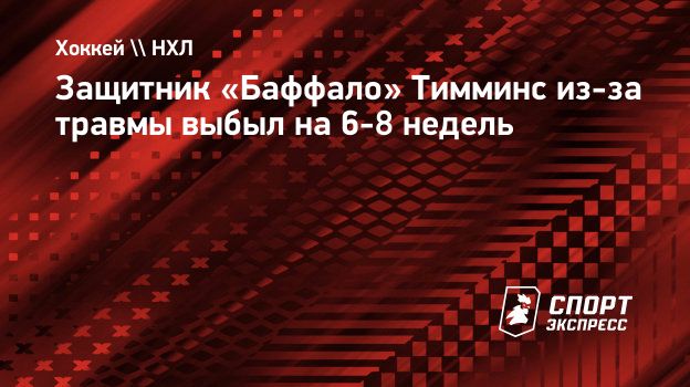 Защитник «Баффало» Тимминс из-за травмы выбыл на 6-8 недель