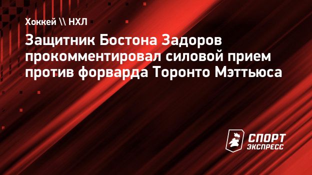 Защитник «Бостона» Никита Задоров прокомментировал силовой прием против форварда «Торонто» Остона Мэттьюса в матче регулярного чемпионата НХЛ (5:3).