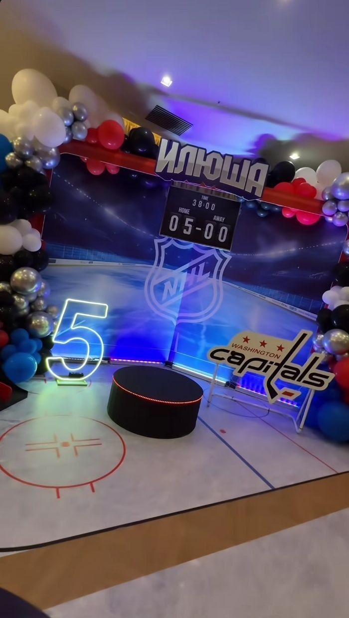Праздник, который состоялся в Москве, оформили в хоккейном стиле: помещение было украшено символикой НХЛ и «Вашингтона».