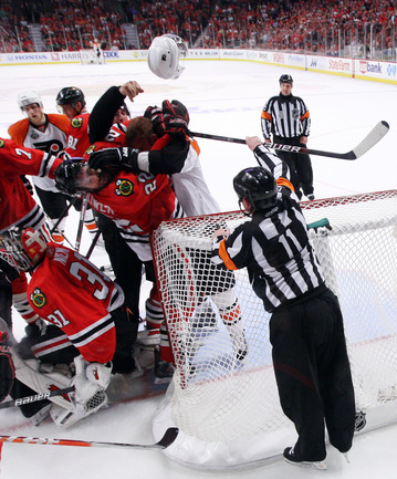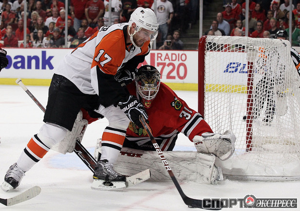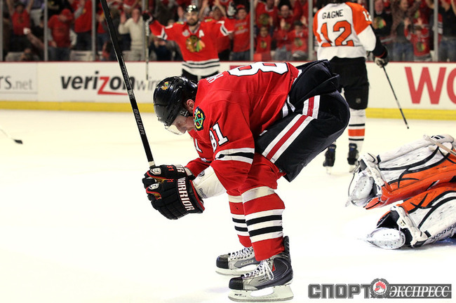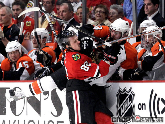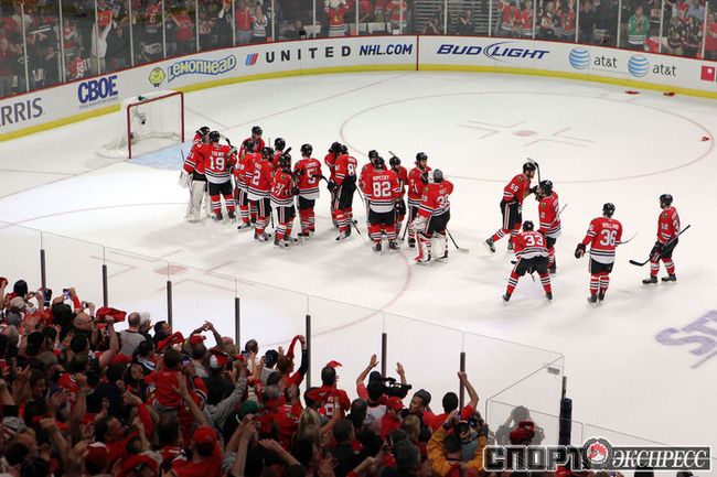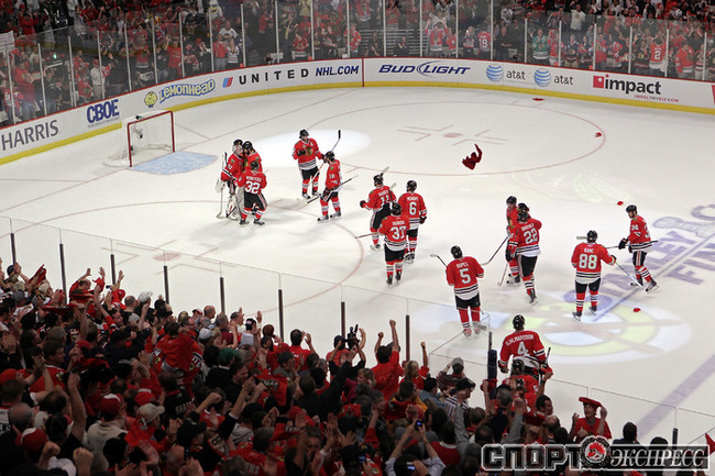31.05.2010. "Чикаго" продолжил пользоваться преимуществом своей площадки в финале Кубка Стэнли. "Ястребы" отправляются в Филадельфию с двумя победами за спиной. Фото AFP