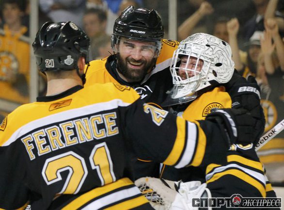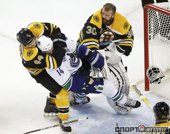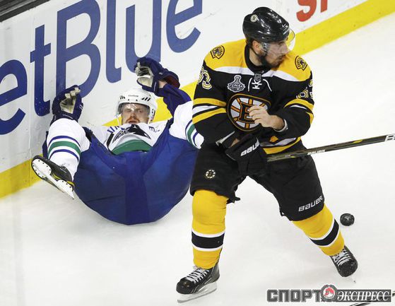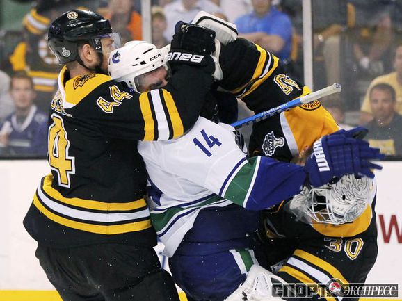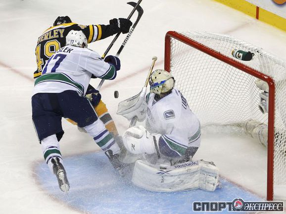 НХЛ. Плей-офф. Финал. Четвертый матч. "Бостон" - "Ванкувер" - 4:0 (1:0, 2:0, 1:0). Голы: Певерли - 3, (Крейчи, Хара), 11:59 (1:0). Райдер - 7, (Сегин, Келли), 31:11 (2:0). Б. Маршан - 8, (П. Бержерон), 33:29 (3:0). Певерли - 4, (Лучич, Крейчи), 43:39 (4:0). Счет в серии: 2-2. Фото REUTERS