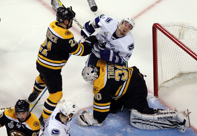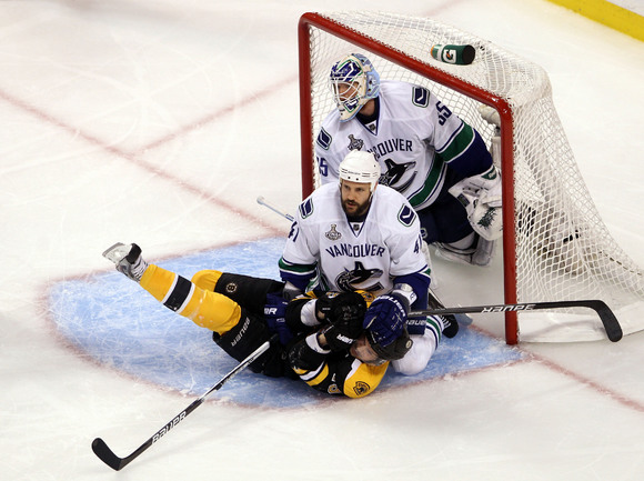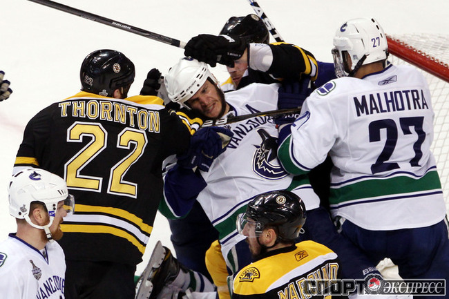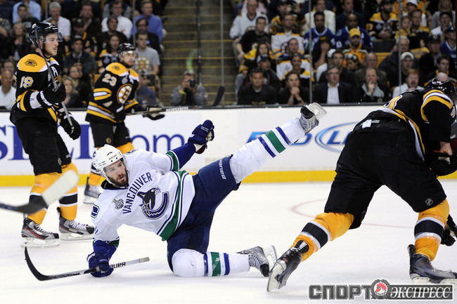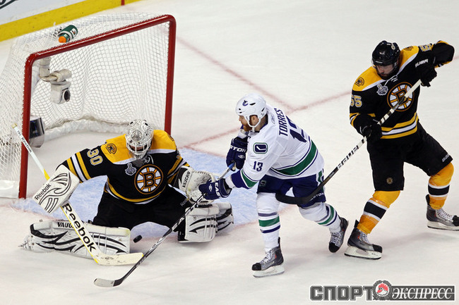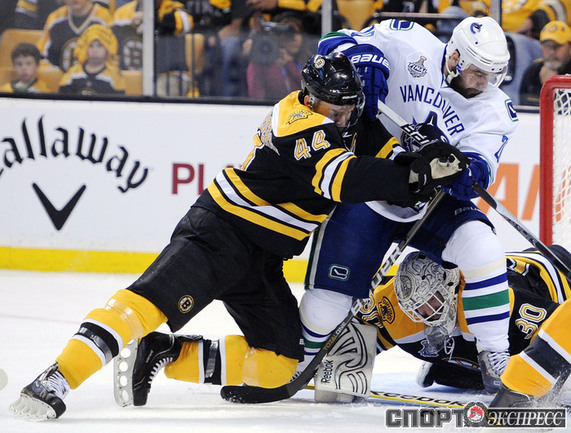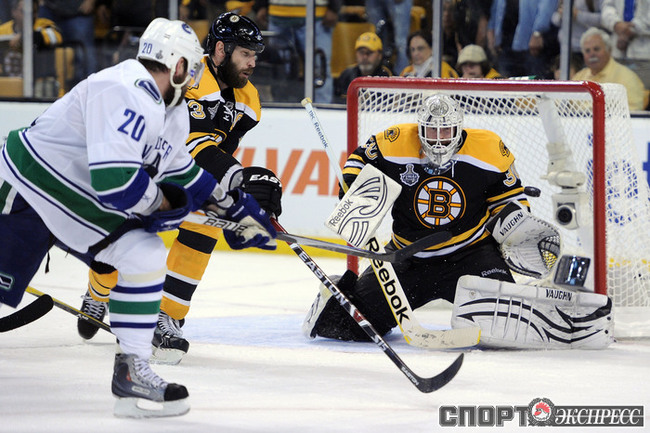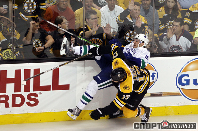 НХЛ. Плей-офф. Финал. Шестой матч. "Бостон" - "Ванкувер" - 5:2 (4:0, 0:0, 1:2). Голы: Маршан (Рекки, Зайденберг), 5:31 (1:0). Лучич (Певерли, Бойчук), 6:06 (2:0). Ференс (Райдер, Рекки), 8:35 (3:0 - бол.). Райдер (Каберле), 09:45 (4:0). Седин Х. (Седин Д., Эрхофф), 40:22 (4:1 - бол.). Крейчи Д (Рекки, Каберле), 46:59 (5:1 - бол.). Лапьер (Седин Д., Хансен), 57:34 (5:2). Счет в серии: 3-3. Фото AFP