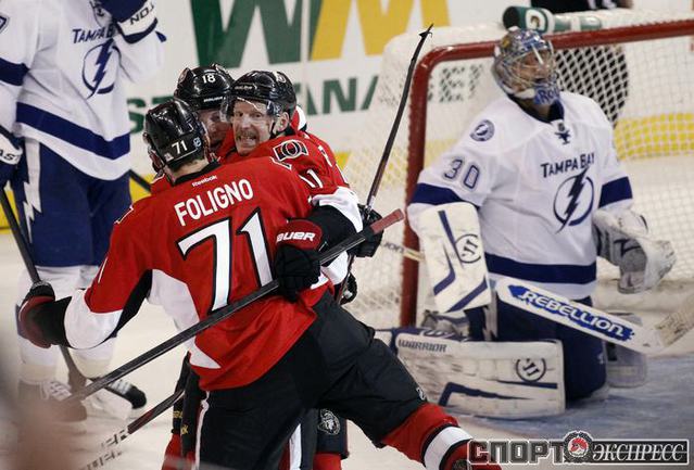 НХЛ. Регулярный чемпионат. "Оттава" - "Тампа-Бэй" - 4:2 (0:0, 1:1, 3:1). "Питтсбург" - "Бостон" - 1:3 (0:0, 0:2, 1:1). Девять бросков Малкина не принесли успеха "Питтсбургу". "Рейнджерс " - "Торонто" - 2:4 (0:1, 2:2, 0:1). Фото REUTERS