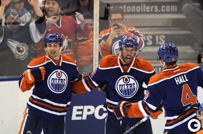 НХЛ. Регулярный чемпионат. "Эдмонтон" - "Чикаго" - 8:4.Голы: Холл - 18 (Ганье),22:22 (1:2).Ганье - 6,27:26 (2:2).Уитни - 1(Ганье), 32:23(3:2 - бол.). Ганье - 7,41:54 (4:3). Баркер - 2(Саттон, Ганье), 43:43 (5:3). Ганье - 8,46:25 (6:4).Ганье - 9, 54:31 (7:4).Эберле - 20(Ганье, Холл), 56:15 (8:4)."Нью-Джерси" - "Монреаль" - 5:3.Голы: Паризе - 17(Зубрус, КОВАЛЬЧУК),10:36 (1:2).Дарш - 3,21:35 (1:3 - мен.).Кларксон - 18 (КОВАЛЬЧУК, Фэйн),33:43 (2:3 - бол.). Паризе - 18(КОВАЛЬЧУК, Элиаш), 57:16 (4:3).Илья Ковальчук признан второй звездой матча. Фото AFP и REUTERS