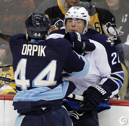 Хоккей. "Питтсбург" - "Виннипег" - 8:5 (2:2, 3:1, 3:2), "Калгари" - "Ванкувер" - 3:2 Б (1:0, 1:1, 0:1, 0:0, 1:0), "Торонто" - "Монреаль" - 0:5. НХЛ определила лучших игроков минувшего игрового дня. Первой звездой стал форвард "Питтсбурга" Евгений Малкин. Россиянин во встрече с "Виннипегом" (8:5) набрал 5 (1+4) очков. Фото REUTERS