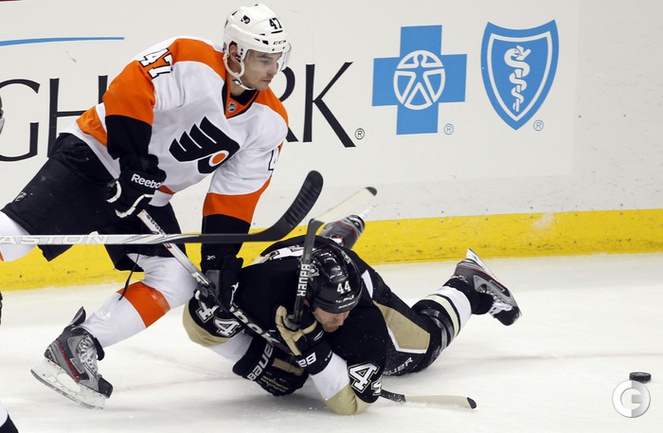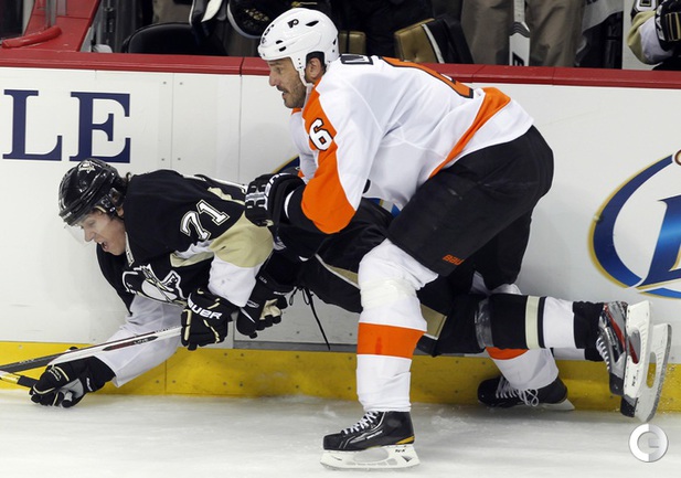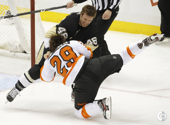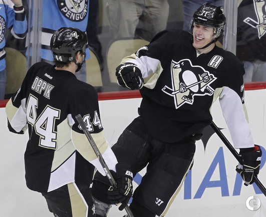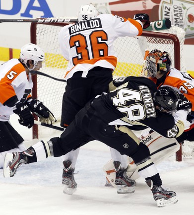 НХЛ. Регулярный чемпионат. "Питтсбург" - "Филадельфия" - 4:2 (1:1, 3:1, 0:0). "Рейнджерс " - "Вашингтон" - 1:4 (0:3, 1:1, 0:0). "Вашингтону" Александра ОВЕЧКИНА уже в первом раунде плей-офф Кубка Стэнли предстоит сыграть с чемпионским "Бостоном". Нападающий "Питтсбурга" Евгений Малкин в матче регулярного чемпионата НХЛ с "Филадельфией" (4:2) отметился 2 (1+1) очками. Россиянин довел свой бомбардирский счет до 109 (50+59) очков, гарантировав себе по итогам гладкого чемпионата "Арт Росс Трофи" (приз лучшему бомбардиру регулярного чемпионата). Фото REUTERS
