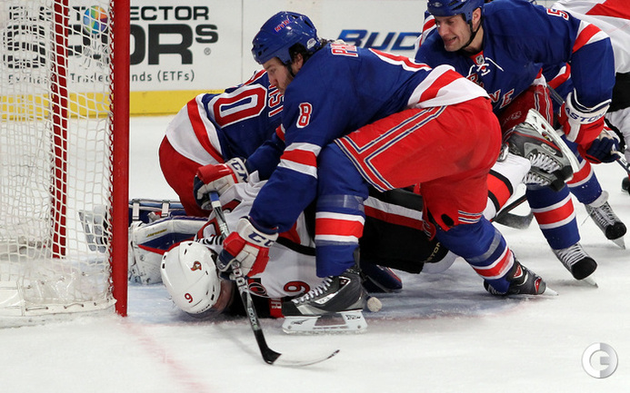 НХЛ. Плей-офф. 1/8 финала. Первые матчи. "Рейнджерс " - "Оттава" - 4:2. Голы: Кэллахэн - 1 (Строльман, АНИСИМОВ), 12:01 (1:0). Габорик - 1, 16:24 (2:0). Бойл - 1 (АНИСИМОВ, Джирарди), 19:06 (3:0). Ричардс - 1, 42:15 (4:0). Альфредссон - 1, 50:05 (4:1). Кондра - 1, 57:41 (4:2). Нападающий хозяев Артем Анисимов признан третьей звездой матча. "Финикс" - "Чикаго" - 3:2 ОТ. Голы: Тэйвз - 1, 4:04 (0:1). Пайэтт - 1, 27:38 (1:1). Верметт - 1, 37:27 (2:1). Сибрук - 1, 59:45 (2:2). Ганзал - 1, 69:29 (3:2). "Бостон" - "Вашингтон" - 1:0 ОТ. Гол: Келли - 1, 61:18 (1:0). Наши: Овечкин (17:34/1/0), Семин (16:26/1/-1). Фото AFP