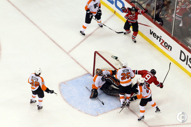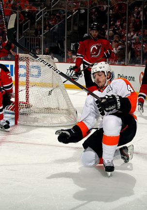 НХЛ. Плей-офф. 1/4 финала. Восточная конференция. Третий матч. "Нью-Джерси" - "Филадельфия" - 4:3 ОТ. Голы: Шенн - 3, 6:08 (0:1 - бол.). Элиаш - 3 (Жидлицки, КОВАЛЬЧУК), 12:33 (1:1 - бол.). КОВАЛЬЧУК - 4, 12:53 (2:1). Карл - 2, 24:44 (2:2). Паризе - 4, 47:29 (3:2). Бриер - 8, 51:04 (3:3). Поникаровский - 1 (КОВАЛЬЧУК), 77:21 (4:3). Форвард "Нью-Джерси" Илья Ковальчук признан второй звездой матча. Голкипер "Филадельфии"Илья Брызгалов отразил 27 бросков. Счет в серии: 2-1 (3:4 ОТ, 4:1) Фото AFP и REUTERS
