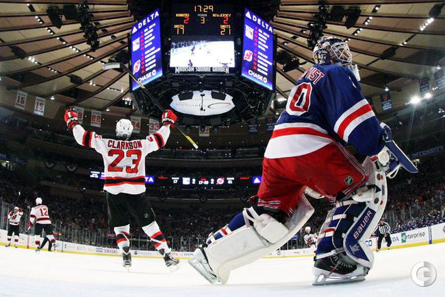 НХЛ. Кубок Стэнли. Восточная конференция. 1/2 финала. Второй матч. "Рейнджерс" - "Нью-Джерси" - 2:3. Голы: КОВАЛЬЧУК - 6, 13:39 (0:1 - бол.). Стаал - 3, 22:23 (1:1). Крейдер - 4 (Строльман, АНИСИМОВ), 32:19 (2:1 - бол.). Картер - 2, 38:09 (2:2). Кларксон - 3, 42:31 (2:3). Счет в серии: 1-1 (3:0). Фото AFP