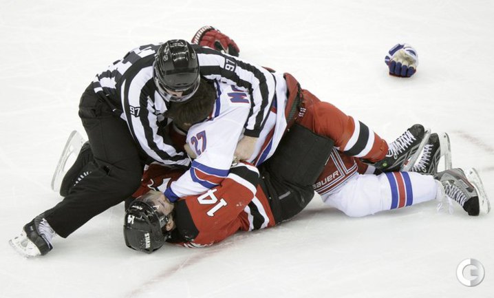 Хокке. НХЛ. Плей-офф. 1/2 финала. Восточная конференция. Четвертый матч. "Нью-Джерси" - "Рейнджерс" - 4:1 (2:0, 0:0, 2:1). Наши: Ковальчук (20:27/5/+1), Волченков (13:45/1/+1) - Анисимов (6:17/0/-1). Счет в серии: 2-2. Фото REUTERS