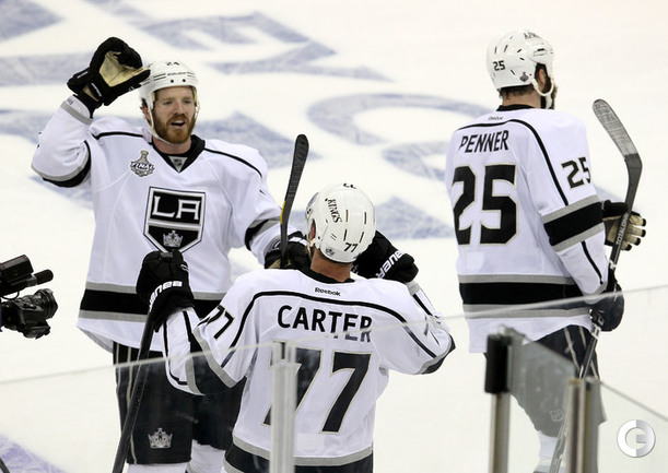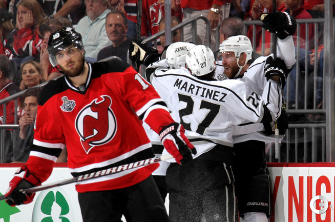 НХЛ. Плей-офф. Финал. Второй матч. "Нью-Джерси" - "Лос-Анджелес" - 1:2 ОТ (0:1, 0:0, 1:0, 0:1). Голы: Доути - 3, 7:49 (0:1). Картер - 5 (Жидлицки, Бернье), 42:59 (1:1). Картер - 5 (Пеннер, Мартинес), 73:42 (1:2). Вратари: Бродер - Куик. Наши: Ковальчук (27:07/2/0), Волченков (17:20/2/0) - Войнов (24:03/0/0). Счет в серии: 0-2 (1:2 ОТ). Фото AFP